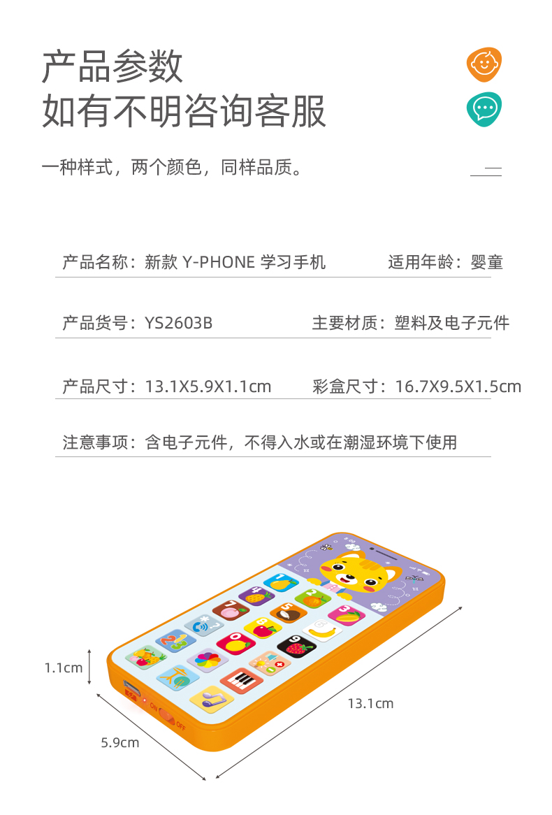 YS2603B 英文學習玩具充電手機