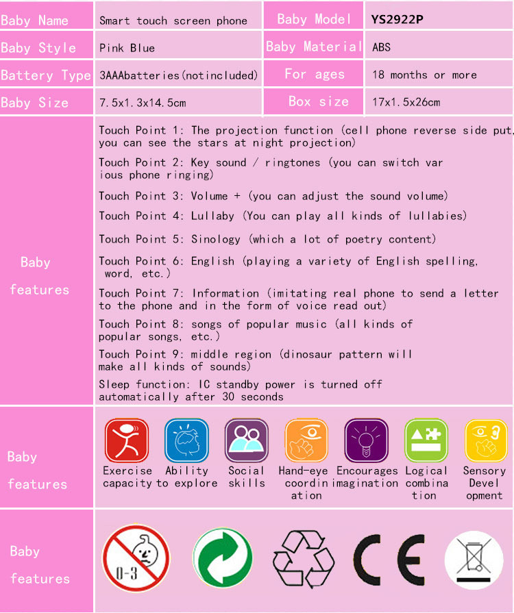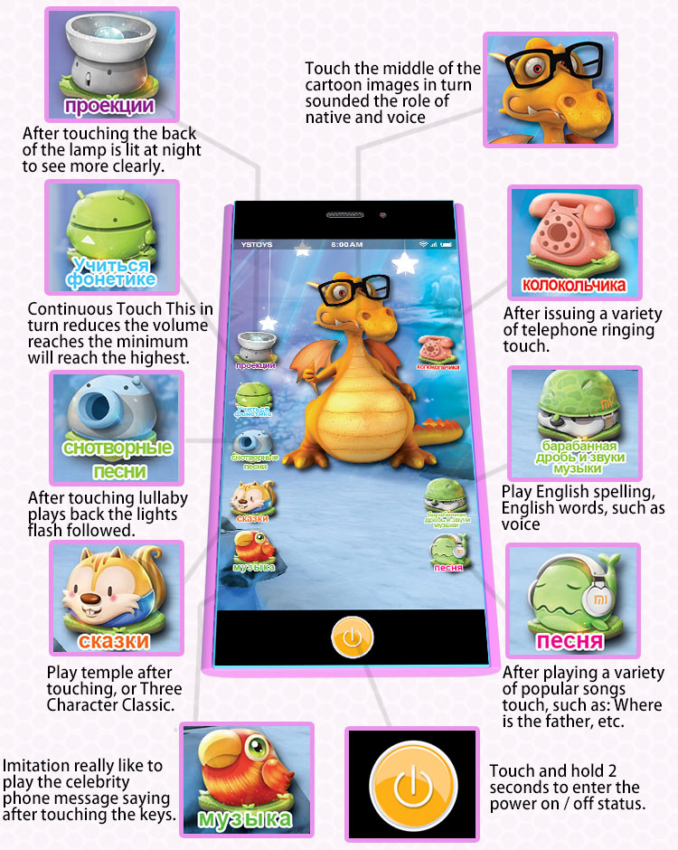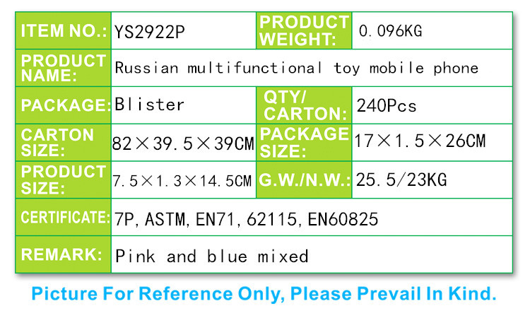 YS2922P 俄文智能觸屏玩具手機